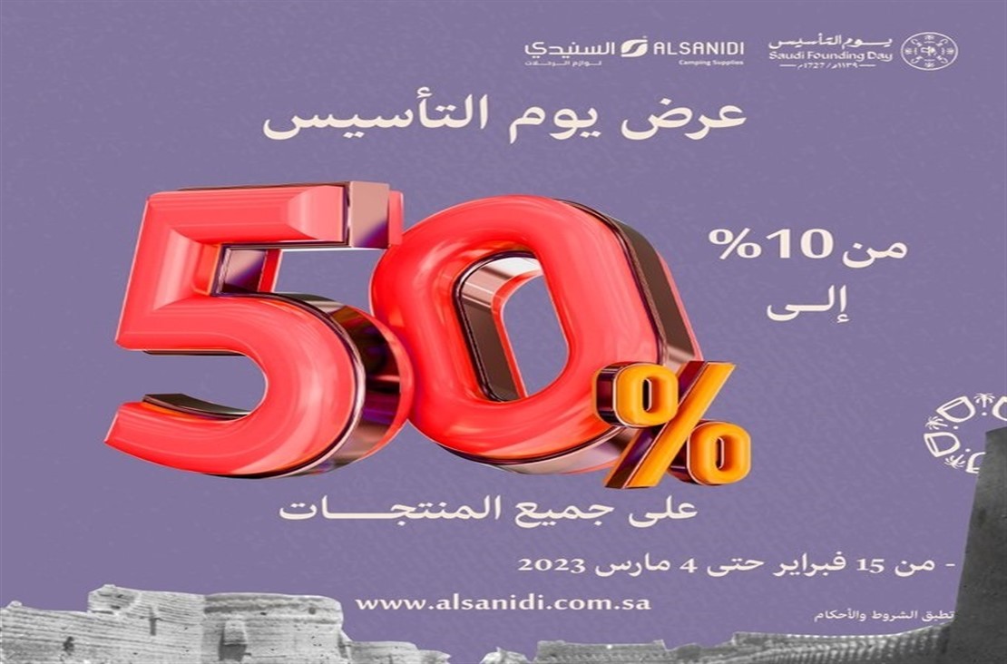 لا يفوتك عرض يوم التأسيس.. خصومات من 10% الي 50% على جميع المنتجات