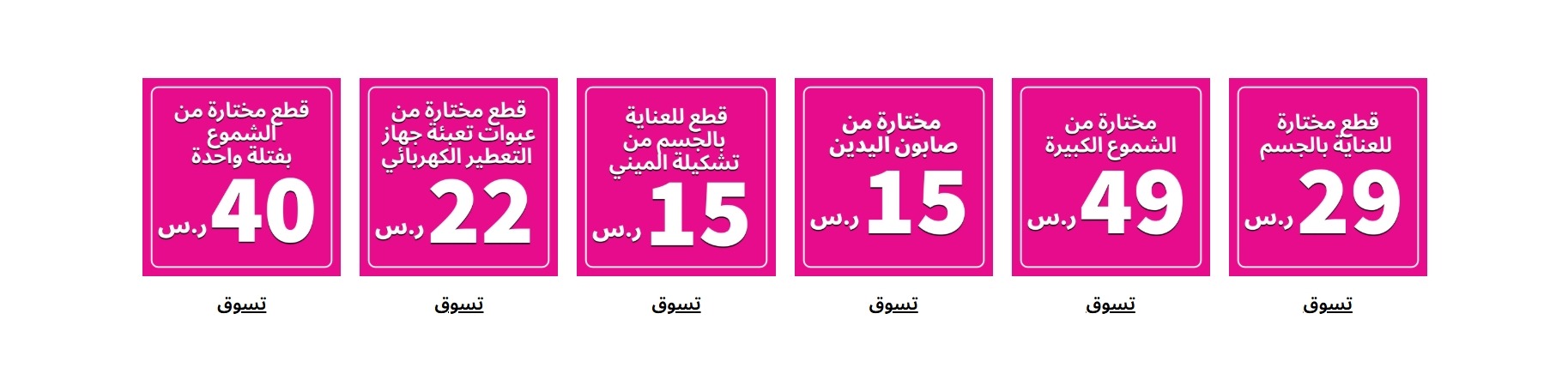 لفترة محدودة فقط، أسعار رائعة على منتجاتك المفضلة تبدأ من 15 ريال!