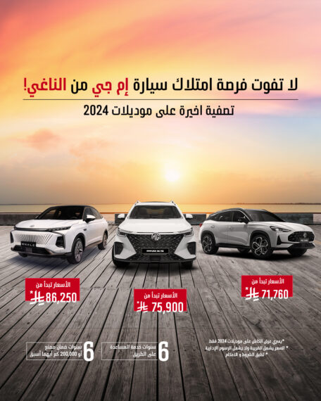 انطلق بسيارة جديدة تليق بالصيف ومغامراته ولا تفوت فرصة امتلاك سيارة إم جي من الناغي مع عرض التصفية على موديلات 2024!