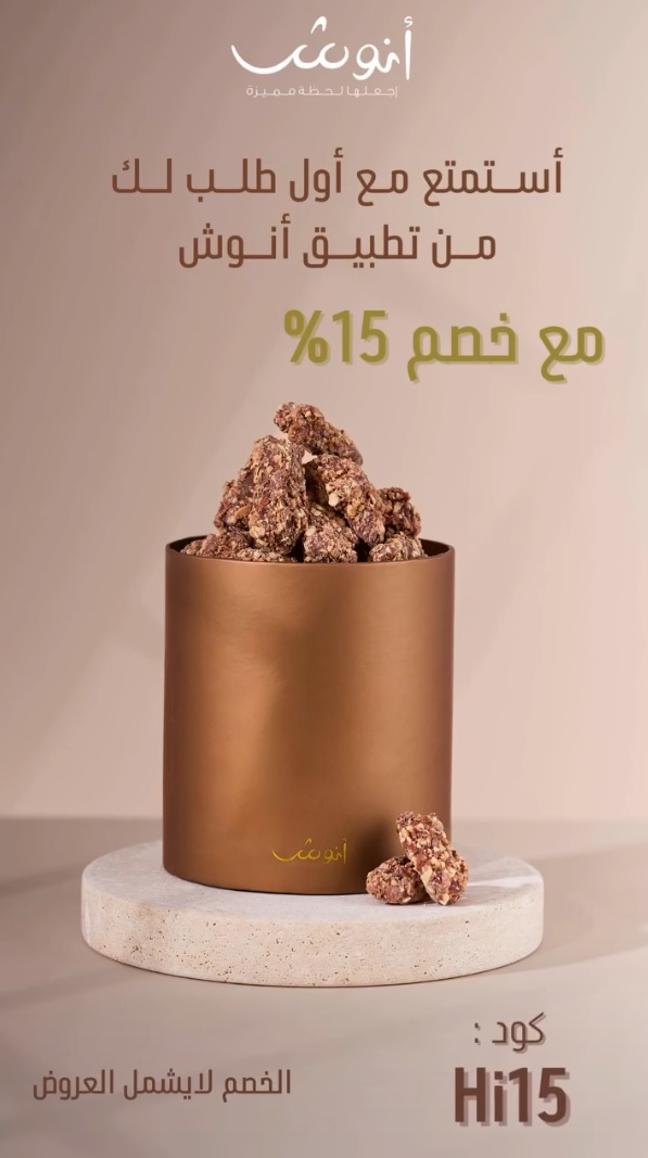 استمتع بأول طلب لك من تطبيق أنوش بخصم 15%!