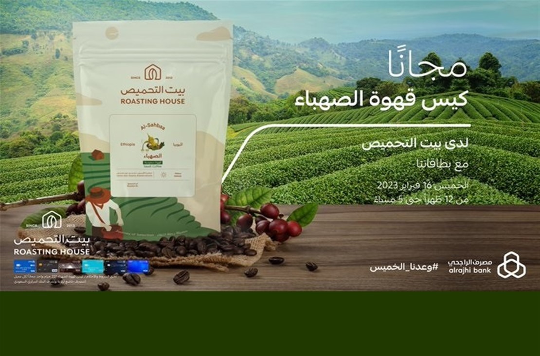 أبرز بطاقة مصرف الراجحي واحصل على محصول بُن (قهوة الصهباء) مجانًا من “بيت التحميص”