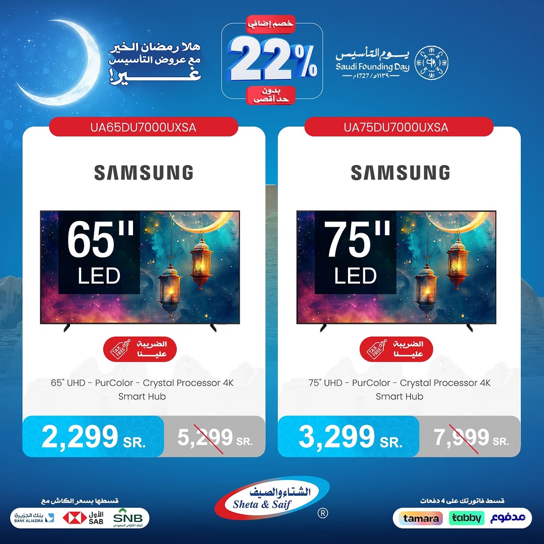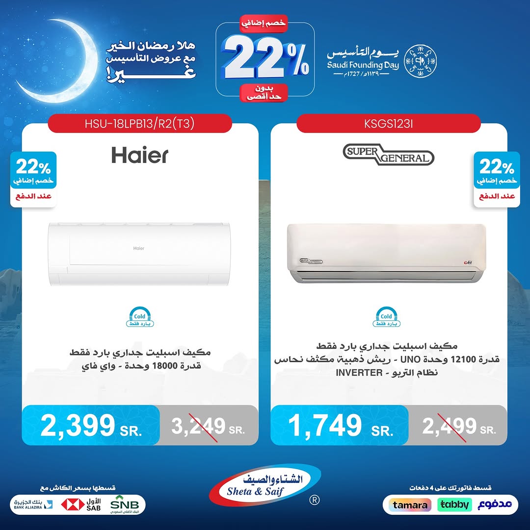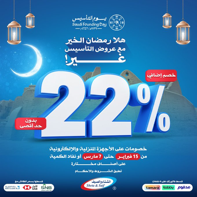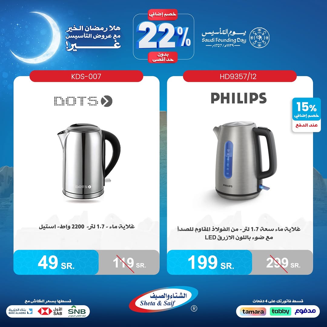 الشتاء والصيف جايكم بأقوى العروض، وأكبر الخصومات 22% بدون حد أقصى على الأجهزة المنزلية والإلكترونيات!