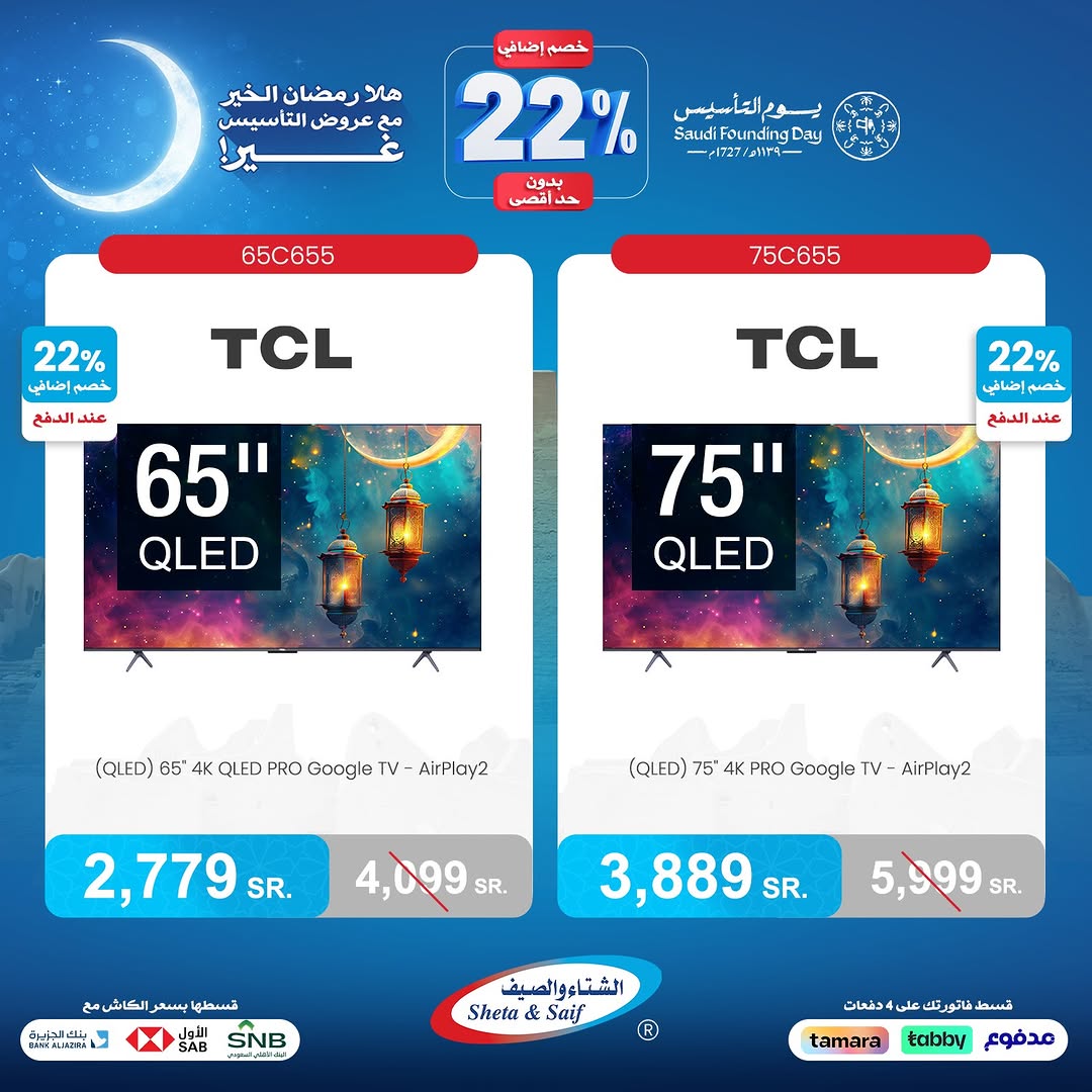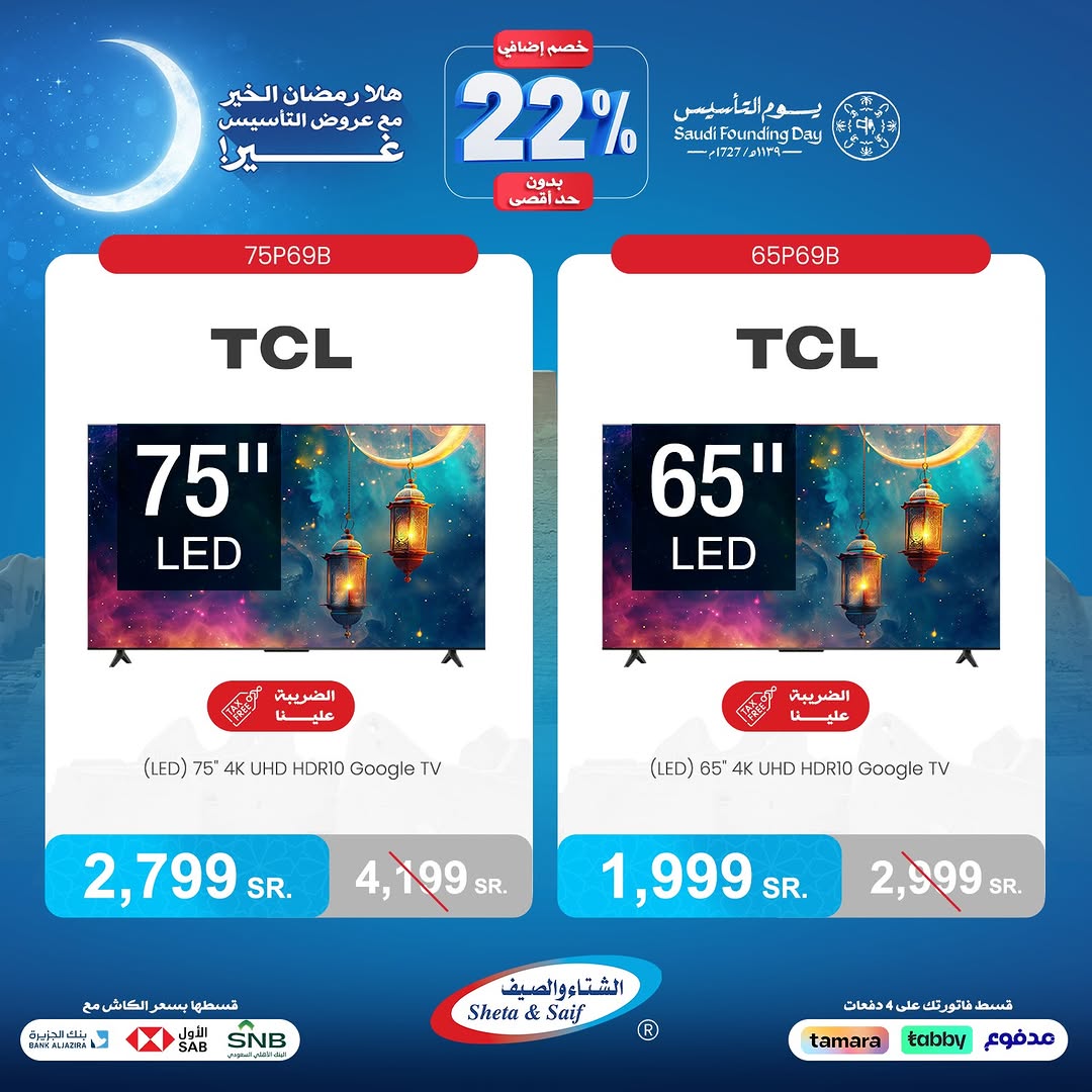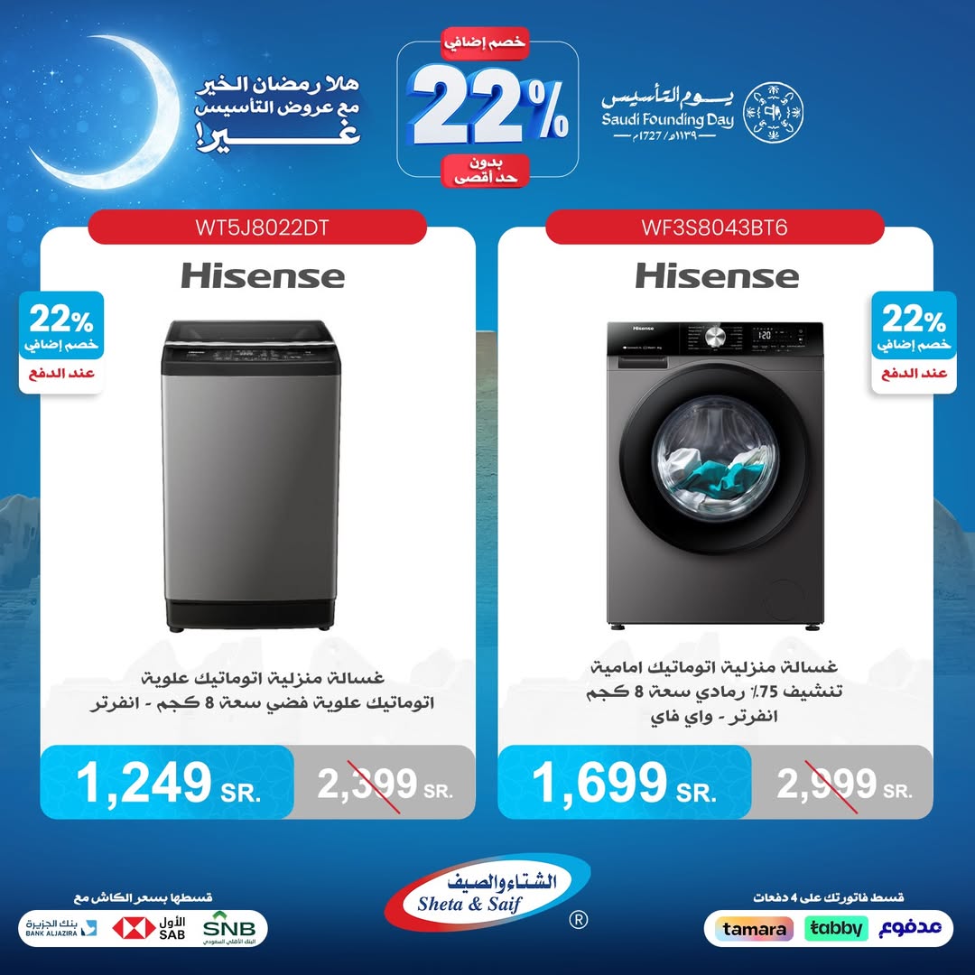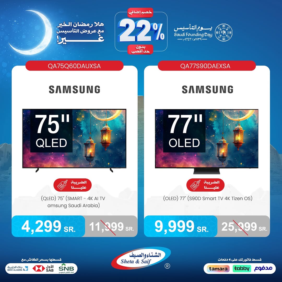 الشتاء والصيف جايكم بأقوى العروض، وأكبر الخصومات 22% بدون حد أقصى على الأجهزة المنزلية والإلكترونيات!