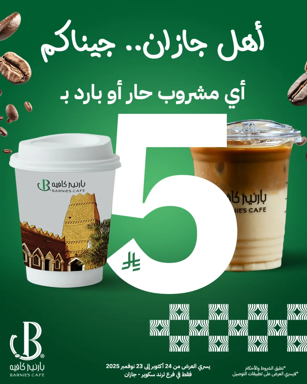 – أي مشروب حار أو بارد بـ 5 ريال بس