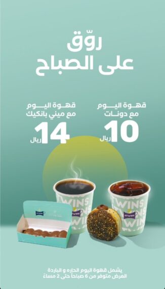 – قهوة اليوم مع ميني بانكيك بـ 14 ريال
