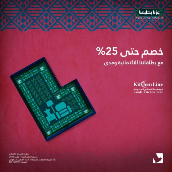 جدد بيتك واستمتع بخصم يصل إلى 25% في فروع الخطوط السعودية للمطابخ عند الدفع ببطاقات بنك الجزيرة الائتمانية أو بطاقات مدى!