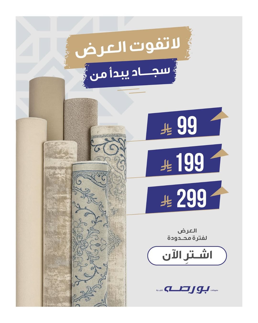خصومات مميزة على منتجات مختارة من السجاد بأسعار تبدأ من 99 ريال – 199 ريال – 299 ريال!