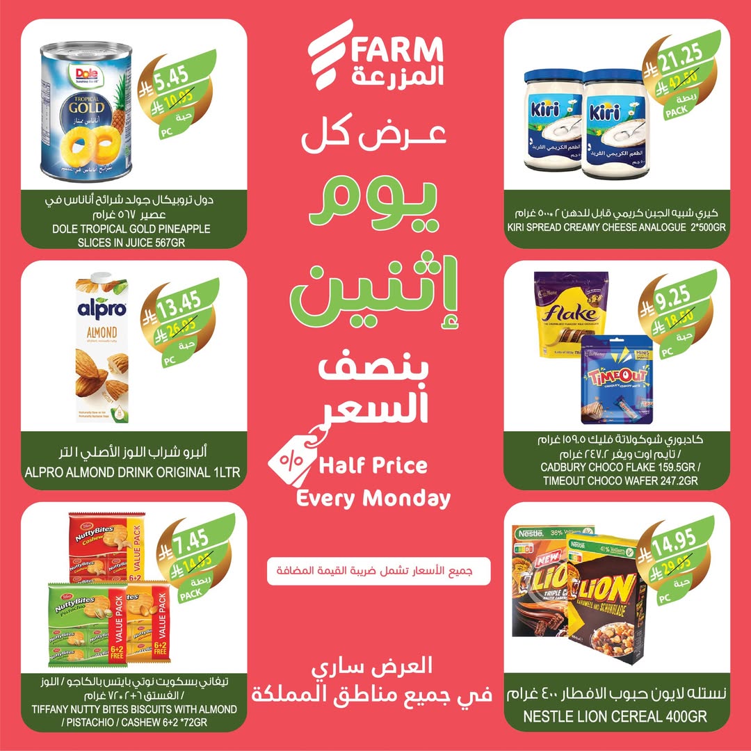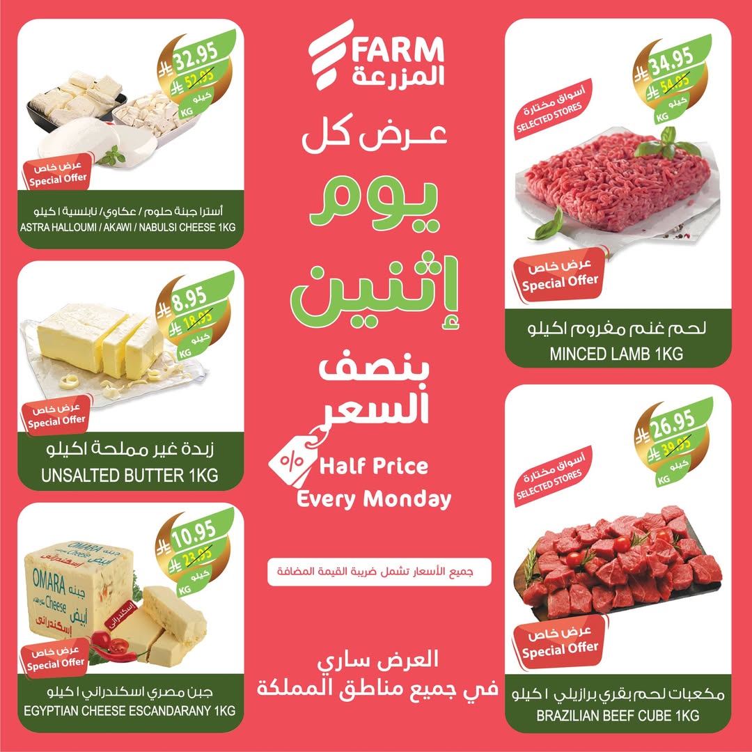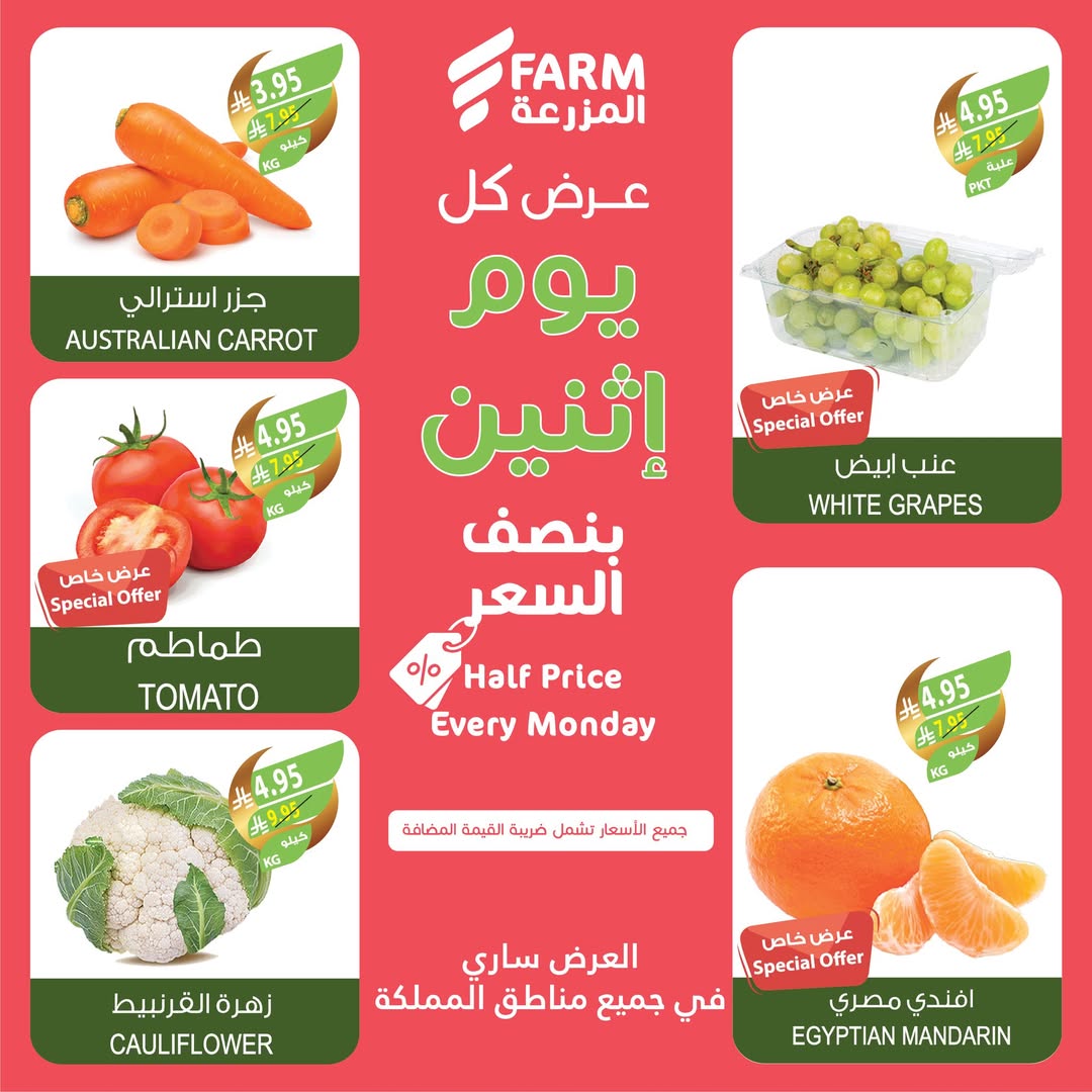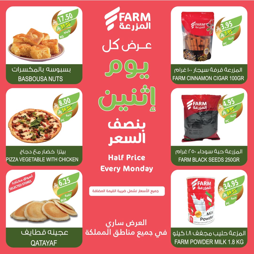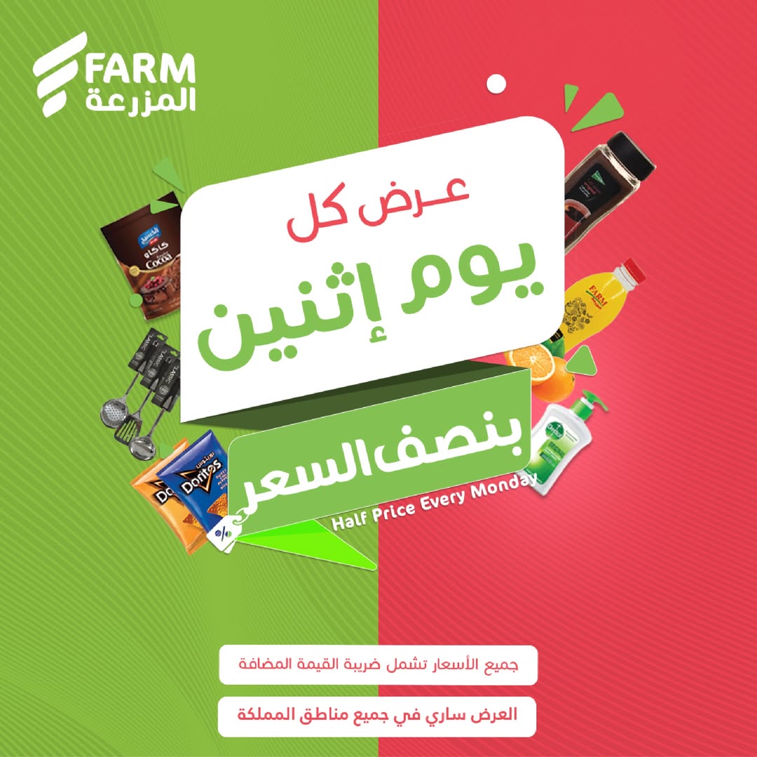 استمتع بتجربة تسوق مختلفة ومميزة مع أسواق المزرعة مع عروض نصف السعر على منتجات بجودة عالية كل يوم اثنين