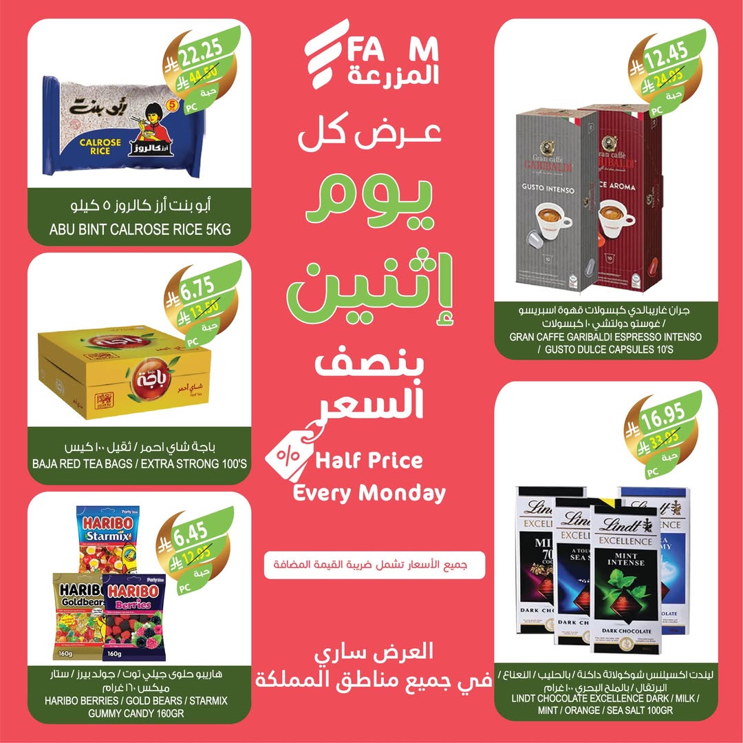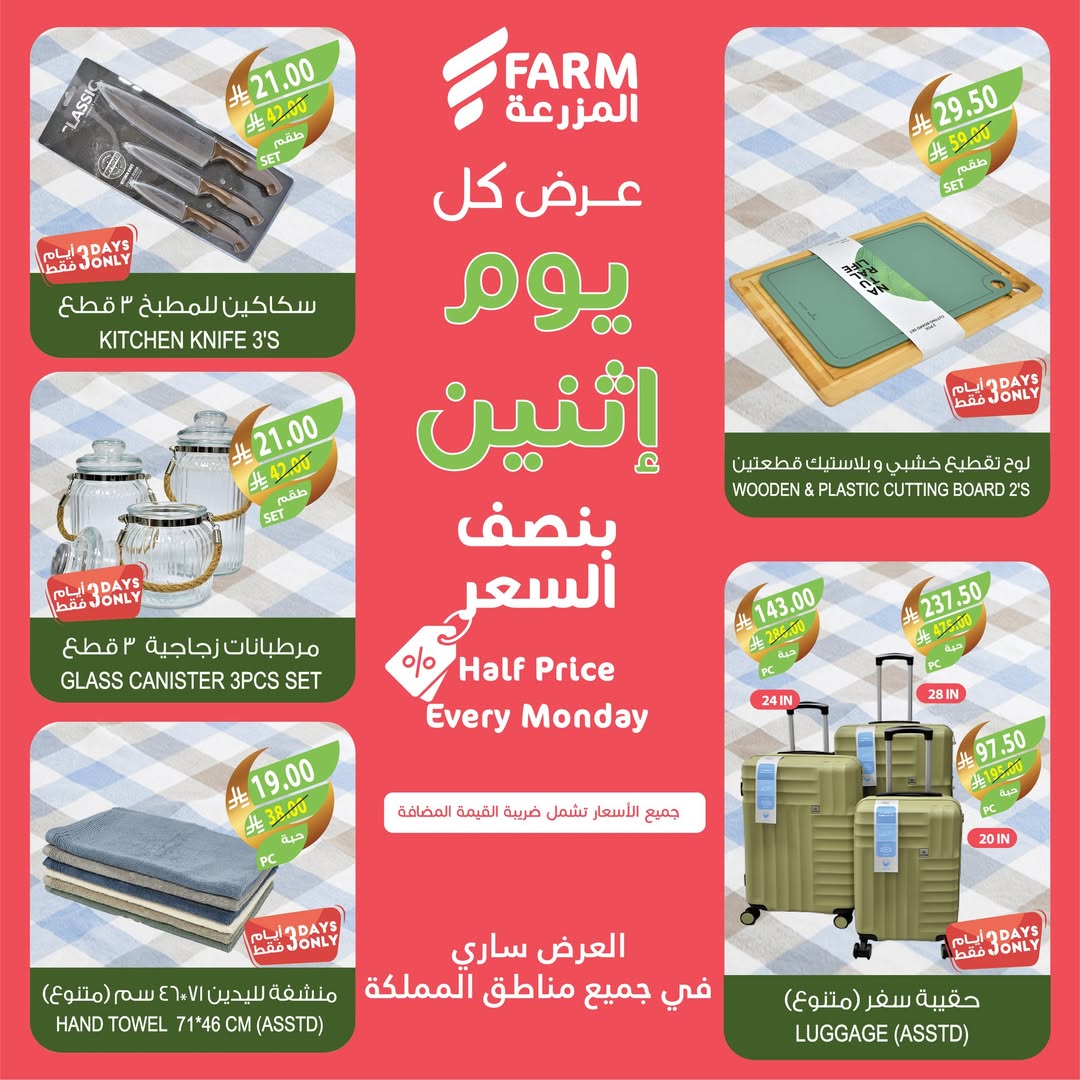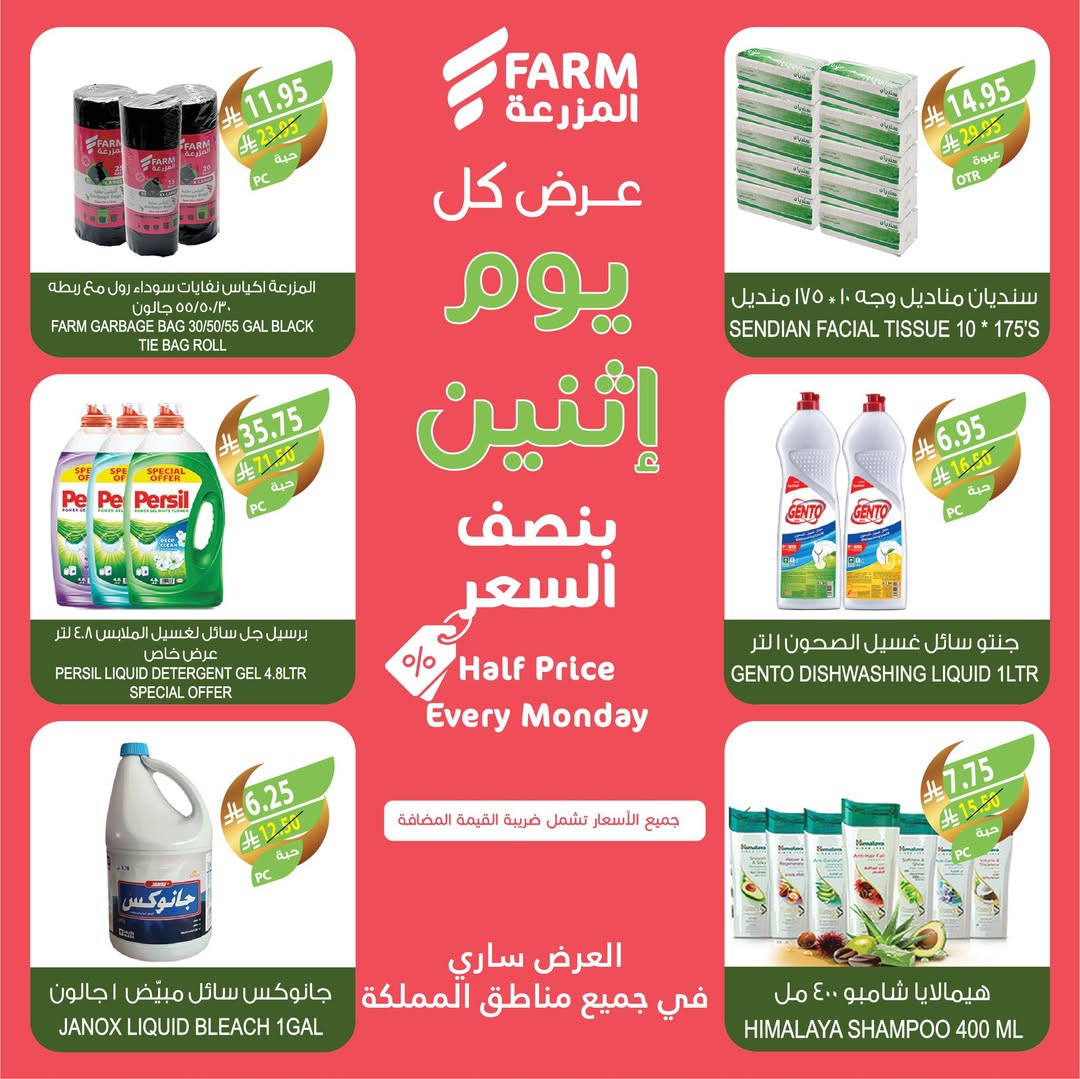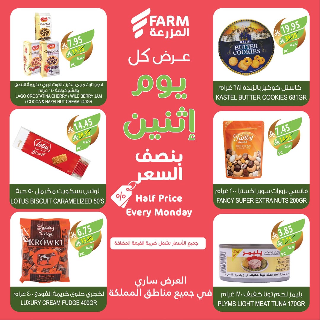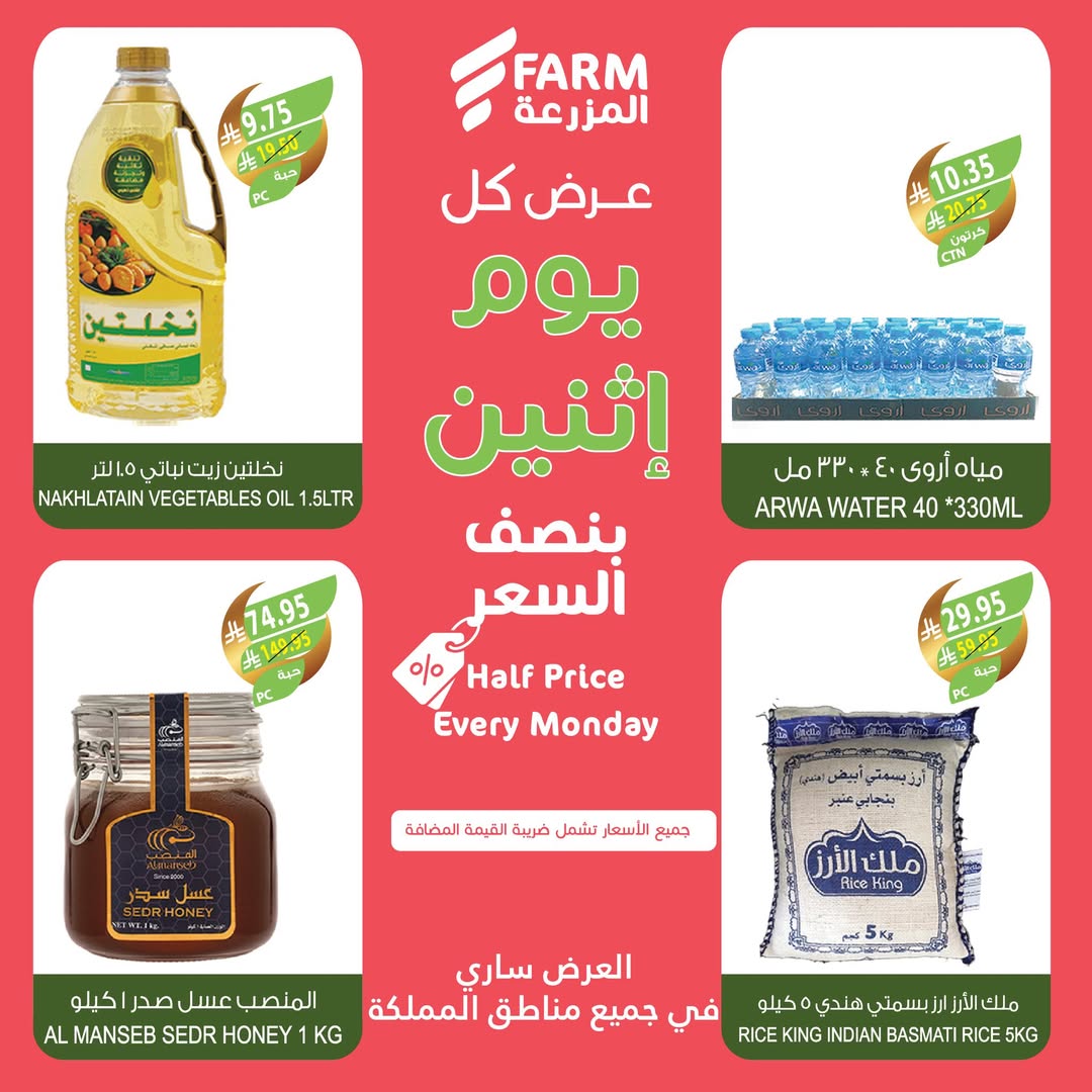 استمتع بتجربة تسوق مختلفة ومميزة مع أسواق المزرعة مع عروض نصف السعر على منتجات بجودة عالية كل يوم اثنين