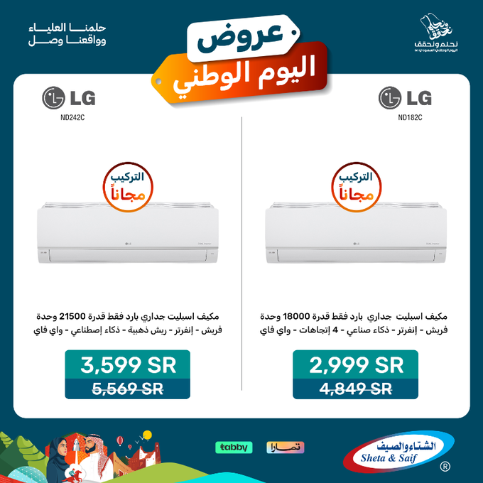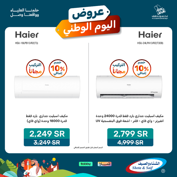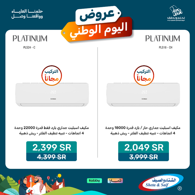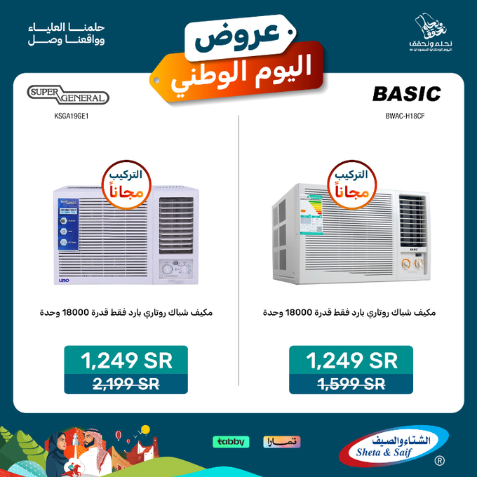 – اشتر حبتين والثالثة بـ94 ريال على المكيفات + تركيب مجاني + خصم إضافي 10%