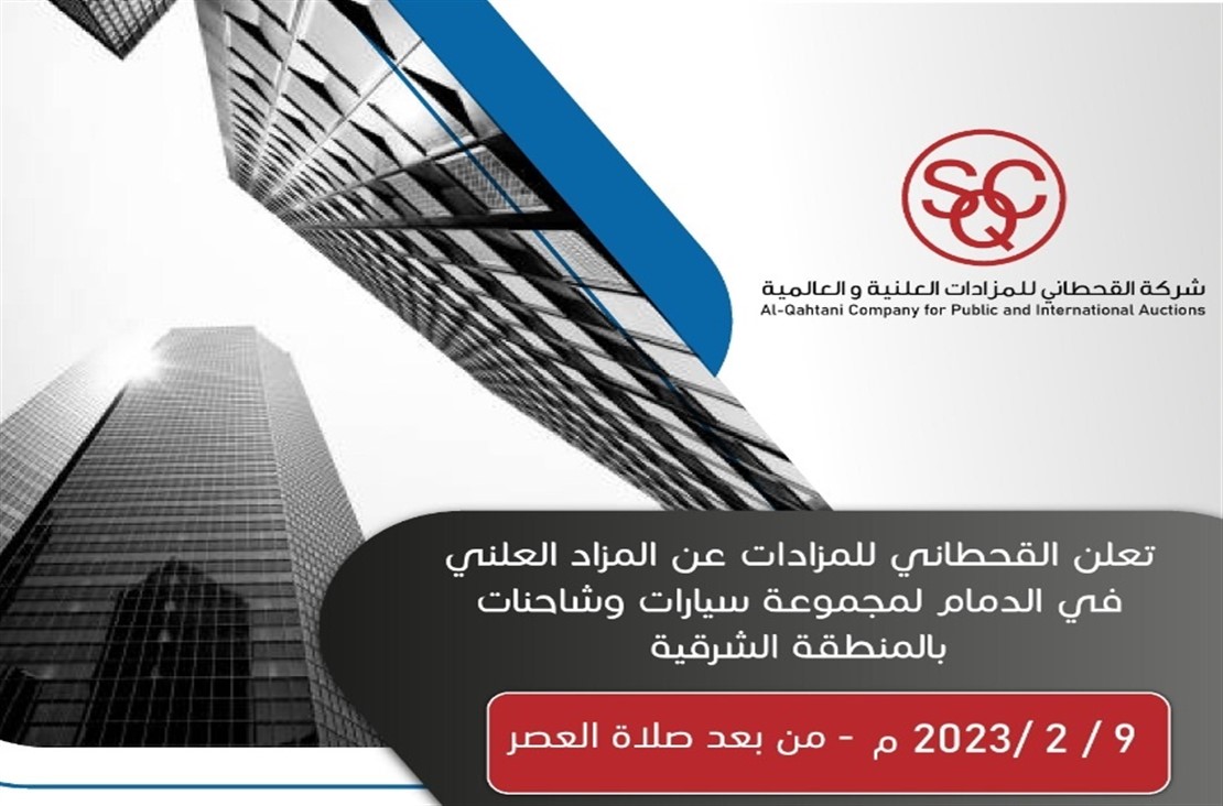 تعلن شركة القحطاني للمزادات عن مزادها القادم لبيع سيارات متنوعة
