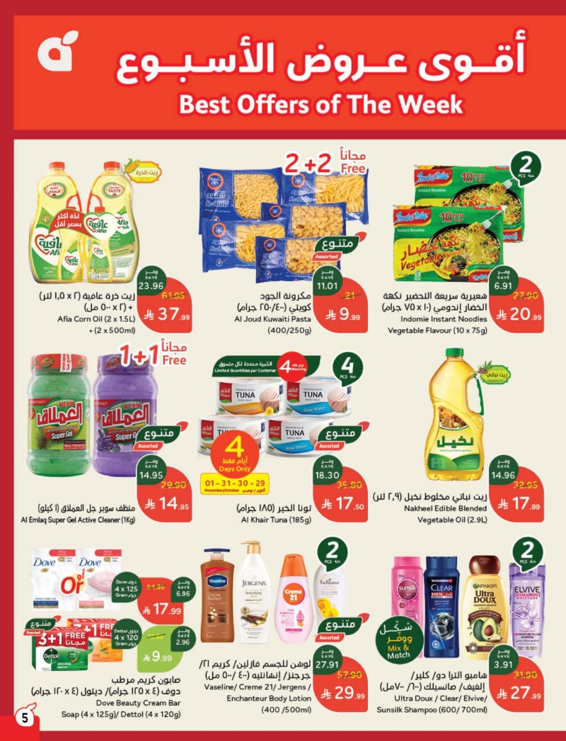 تسري هذه العروض من الأربعاء 29 أكتوبر إلى الثلاثاء 4 نوفمبر 2025 أو حتى نفاد الكمية.