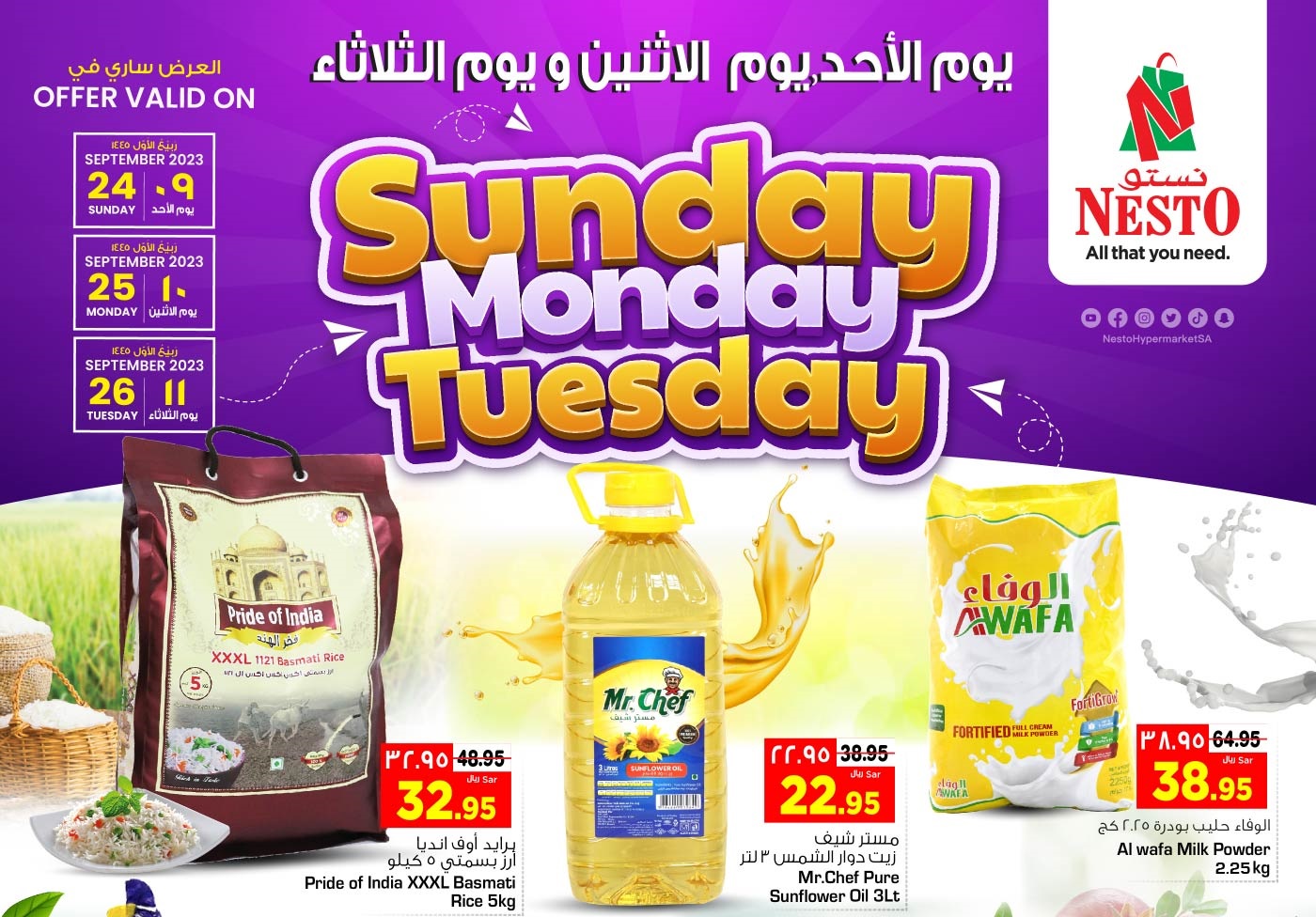 Enjoy the offer on Sunday, Monday and Tuesday to get incredible offers from Nesto markets