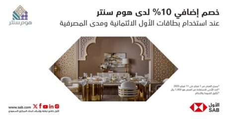 عرض هوم سنتر خصم إضافي 10% لدى هوم سنتر عند استخدام بطاقات الأول الائتمانية ومدى ...